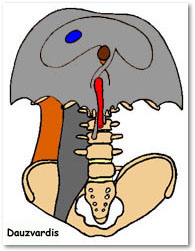 Anatomical illustration showing the origin and attachments of the quadratus lumborum.